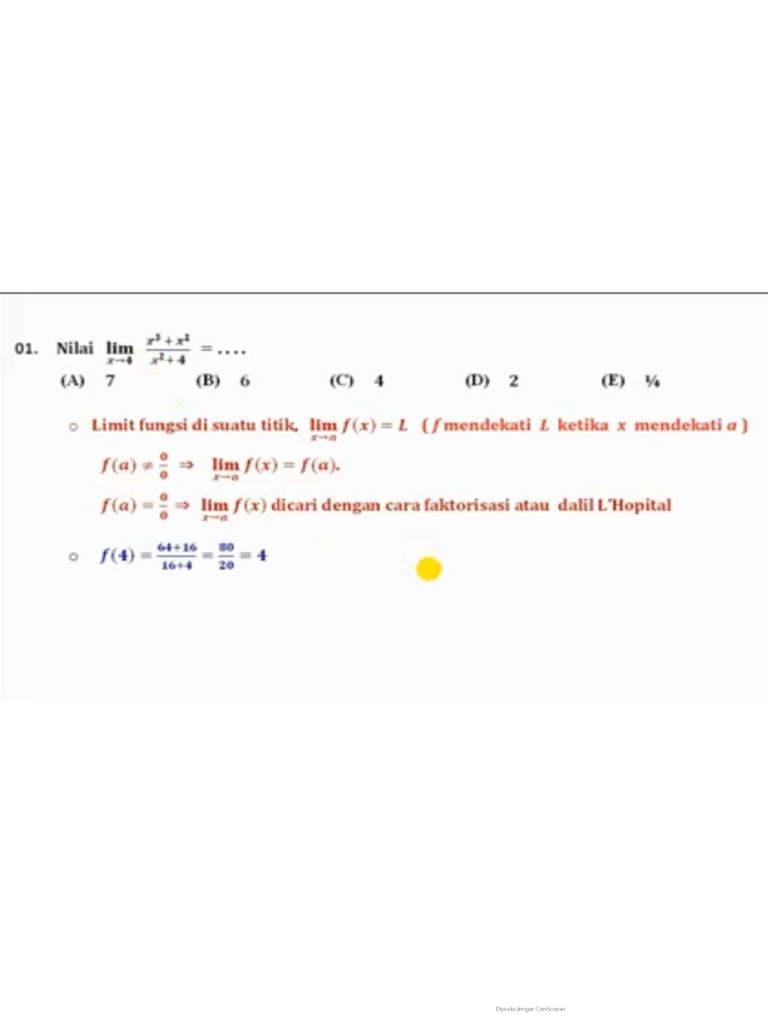 Apr 17, 2015 · pada kesempatan ini kita akan membahas beberapa contoh soal dan penyelesaian limit fungsi menggunakan metode pemfaktoran. Setelahnya, kamu bisa mengerjakan kuis berupa latihan soal untuk mengasah kemampuan belajarmu. Soal limit aljabar yang diselesaikan dengan pemfaktoran. Sep 02, 2019 · ada beberapa cara untuk menentukan jawaban dari limit fungsi aljabar di mana nilai x tak berhingga yaitu: Apabila ditentukan dengan menggunakan metode numerik, maka diperoleh: